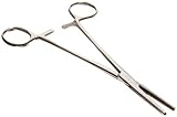 Straight hemostat. The most versatile tool, can be used as clamps, heat sinks, third hands, etc., while soldering. Has a three position locking jaw. Stainless steel, serrated jaw. 8" long.
